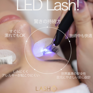 従来のマツエクとは違い、専用のLEDライトでグルー(接着剤)を硬化させる新しい技術です。
